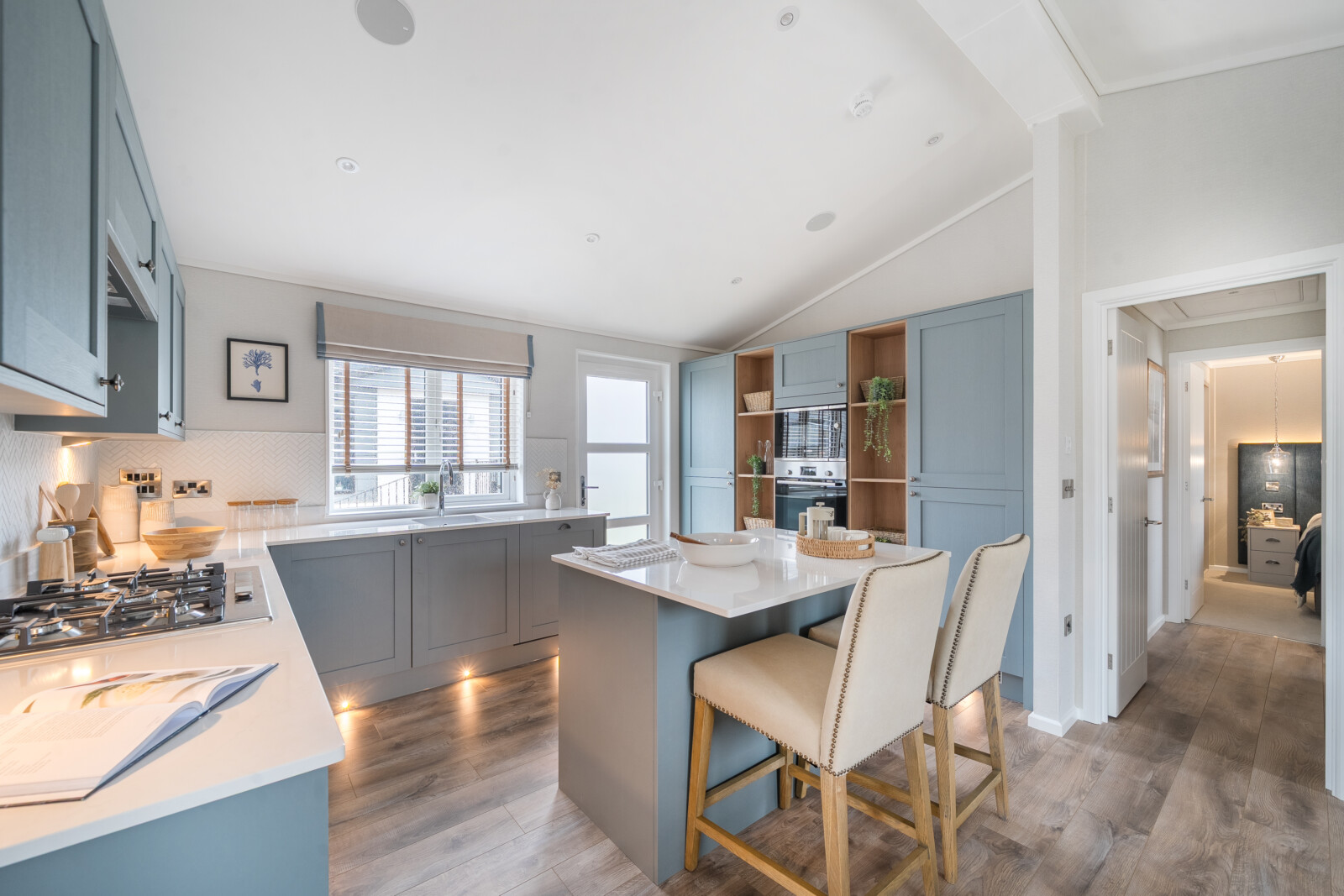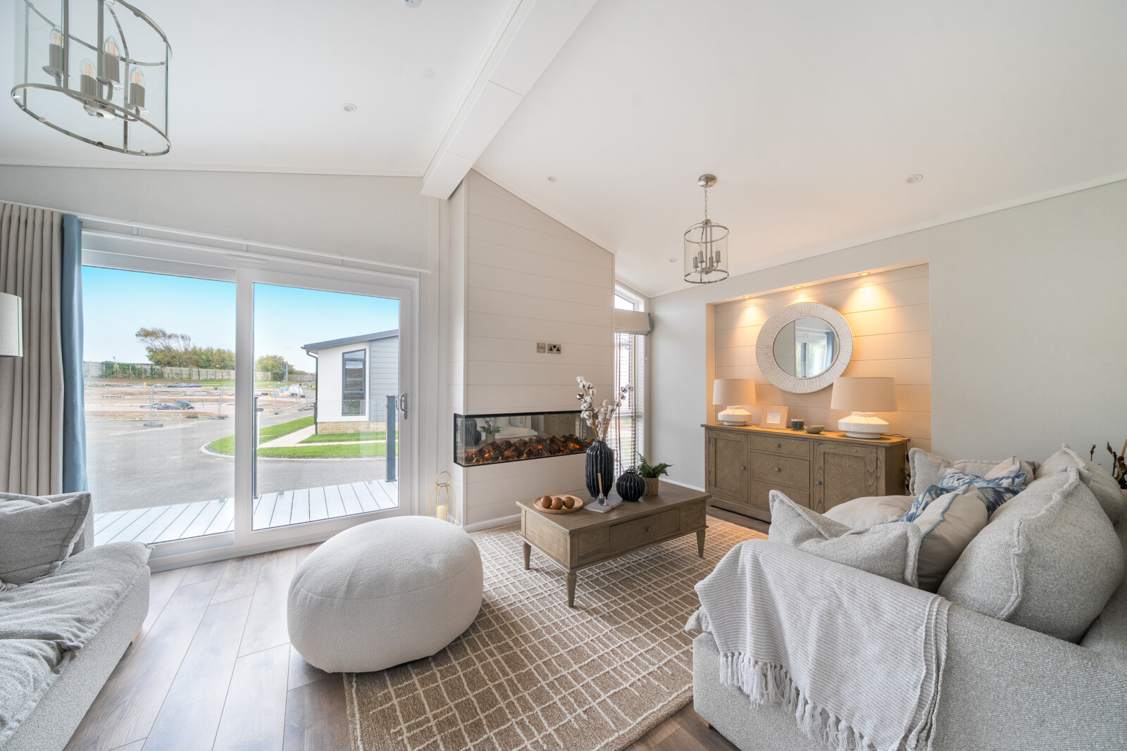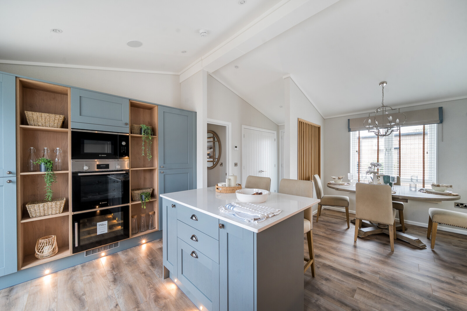 From the moment you step inside, the attention to detail in The Residence is unmistakable. Every element has been thoughtfully considered to create a home of enduring quality and style. The vaulted ceilings in the lounge provide an immediate sense of space, while the grey slat feature wall, oak-effect alcove with ambient spotlights, and plush furnishings exude an atmosphere of refined luxury. This is a living area that invites both relaxation and memorable moments with family and friends.