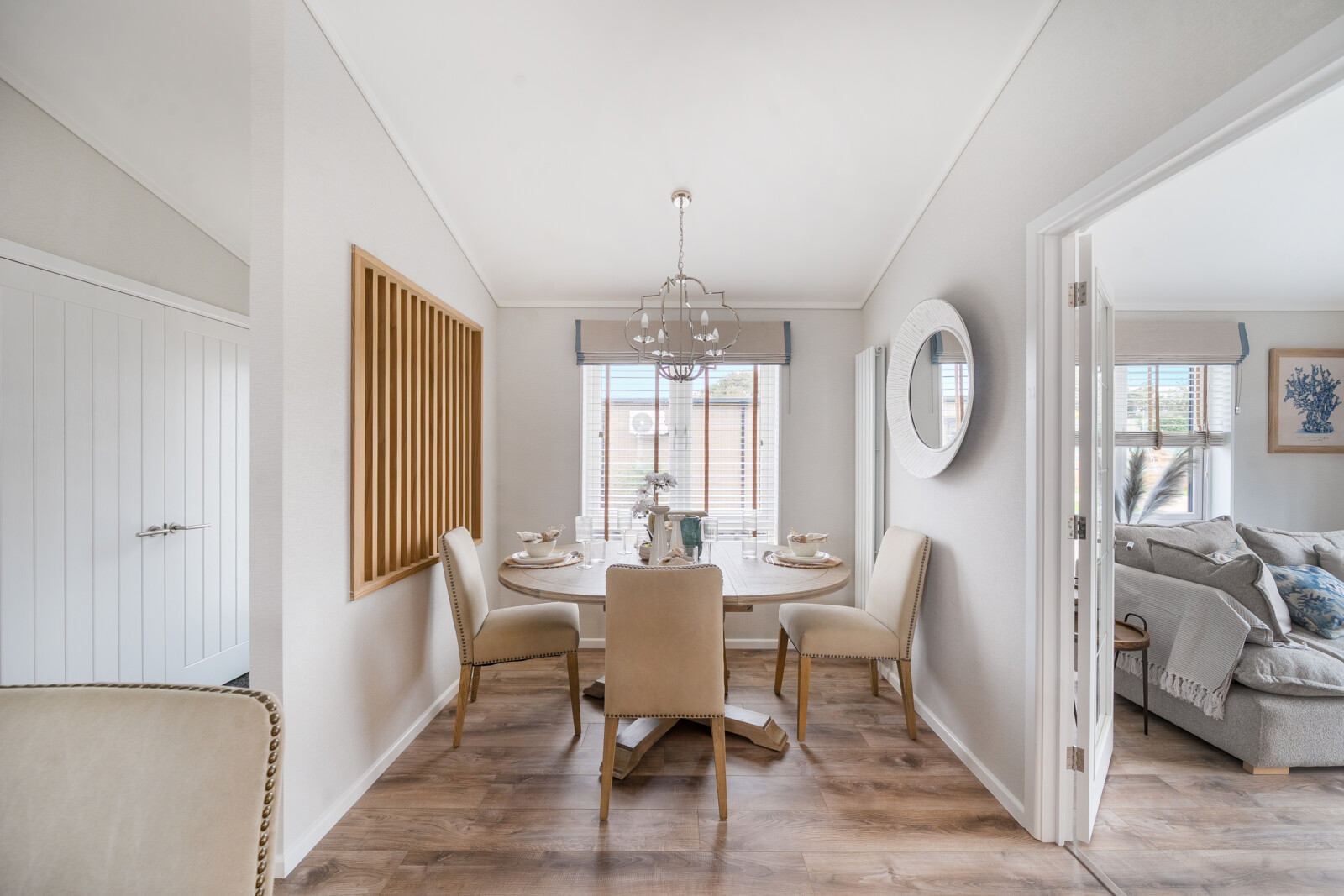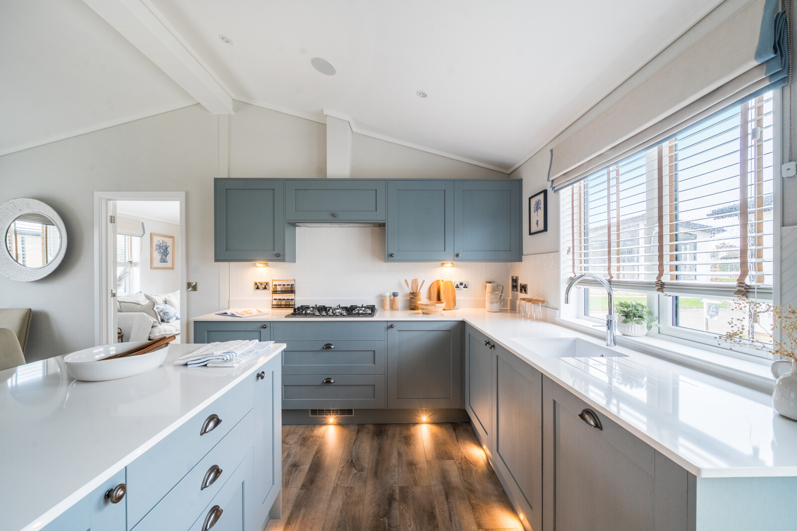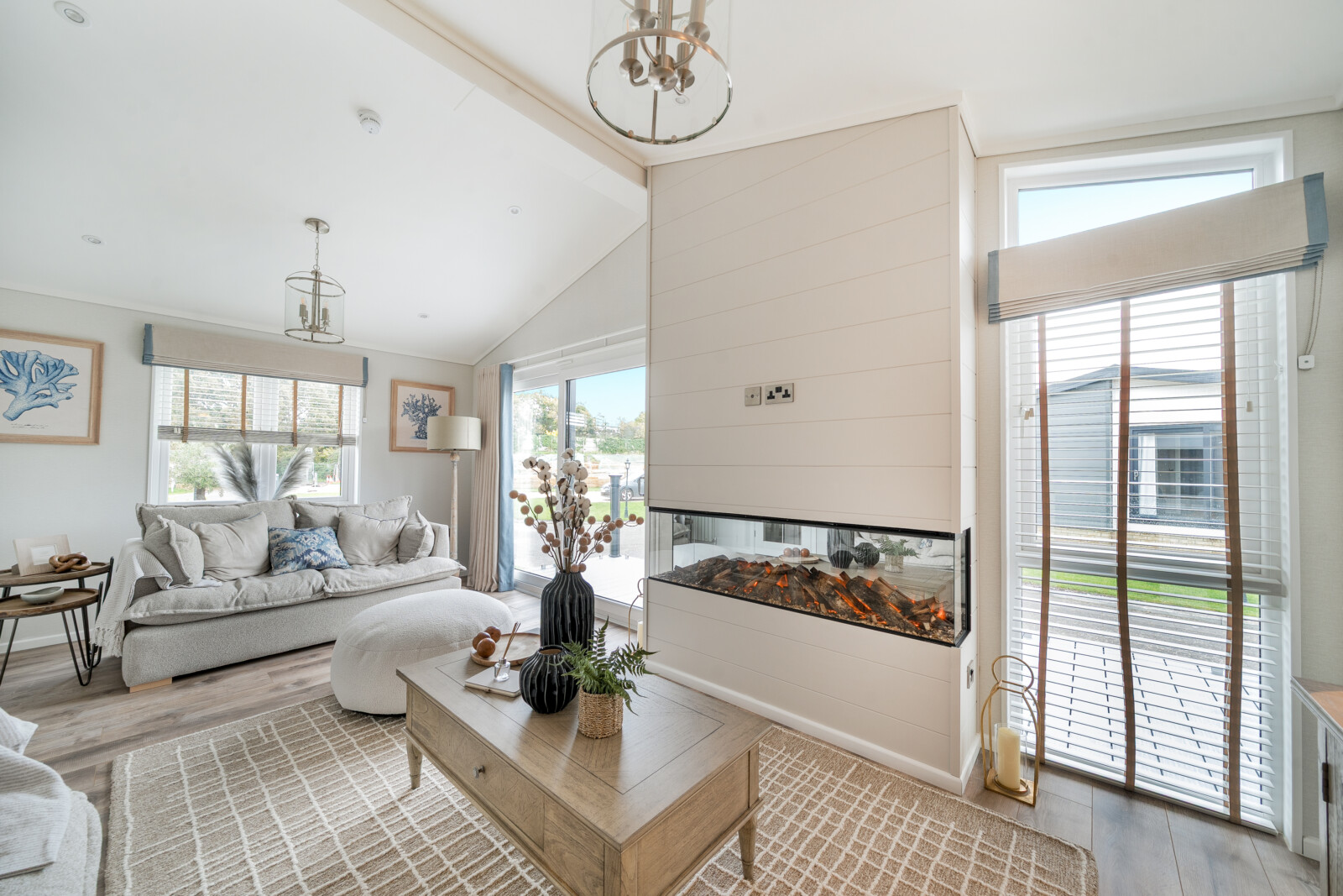 From the moment you step inside, the attention to detail in The Residence is unmistakable. Every element has been thoughtfully considered to create a home of enduring quality and style. The vaulted ceilings in the lounge provide an immediate sense of space, while the grey slat feature wall, oak-effect alcove with ambient spotlights, and plush furnishings exude an atmosphere of refined luxury. This is a living area that invites both relaxation and memorable moments with family and friends.