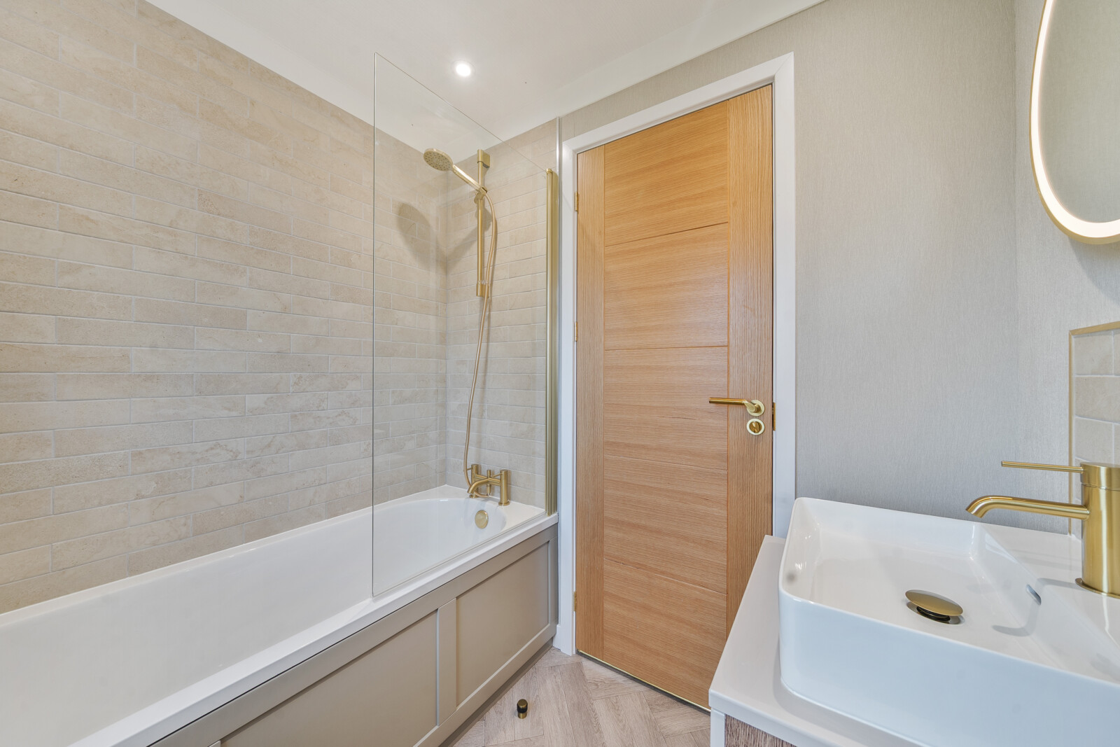 The main bathroom continues the theme of modern convenience, featuring contemporary white sanitaryware and sleek finishes that create a fresh, relaxing space.