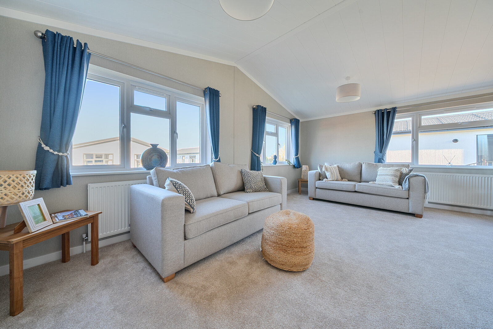Step inside and discover a fresh and inviting interior, where a tranquil design scheme creates a light and airy atmosphere. The spacious open-plan living area is designed for both relaxation and entertaining, offering flexibility to suit your needs. Thoughtfully furnished with two sofas, a stylish dining table with chairs, and complementary furniture, this space provides the perfect balance of comfort and practicality.